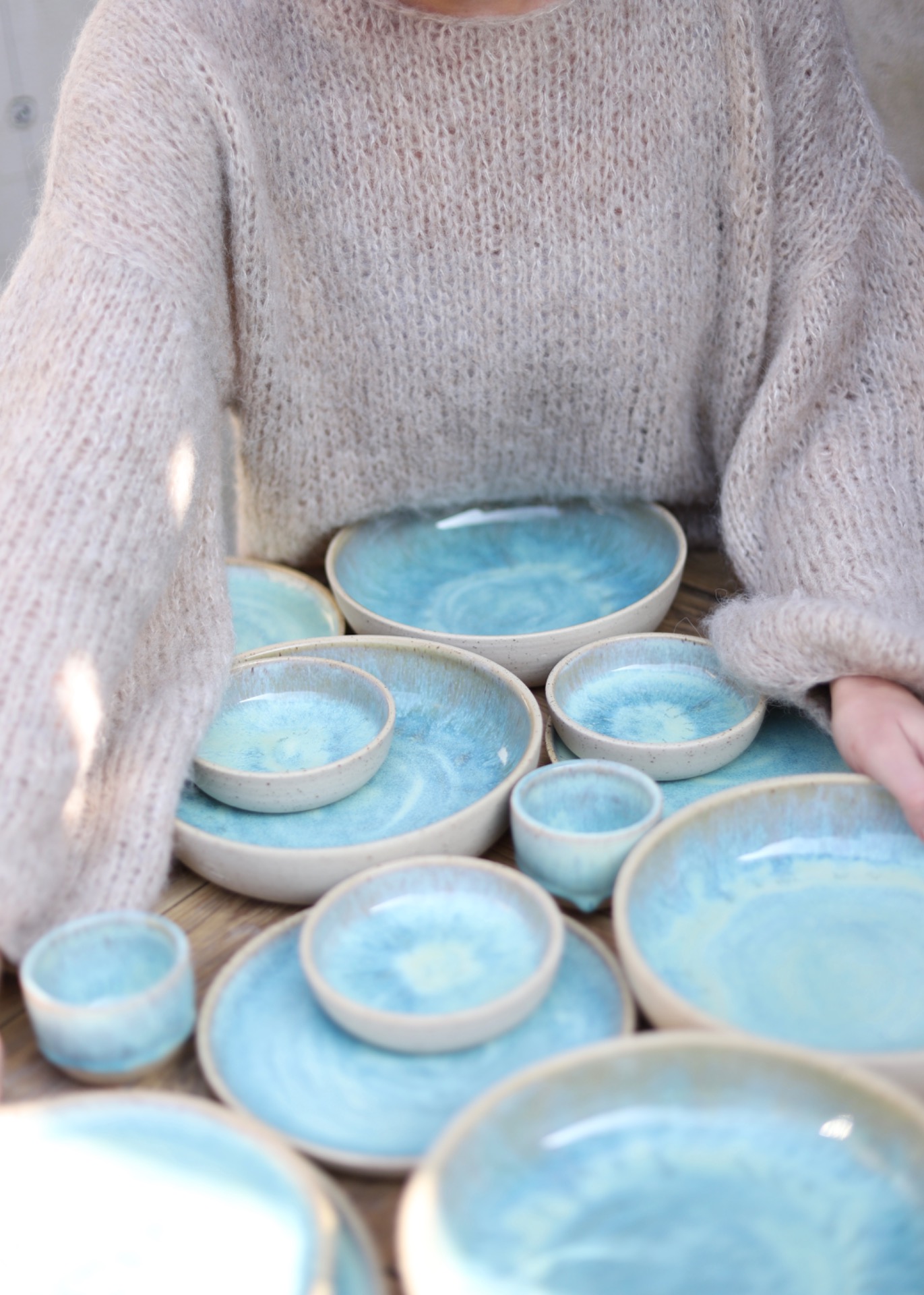 Díky tomu se může mýt v myčce, ale zkracuje to jeho životnost. Použitá hlína i glazura jsou zdravotně nezávadné. Berte prosím v potaz, že se jedná o ruční práci a výrobky se mohou lehce lišit v efektu glazury a velikosti.