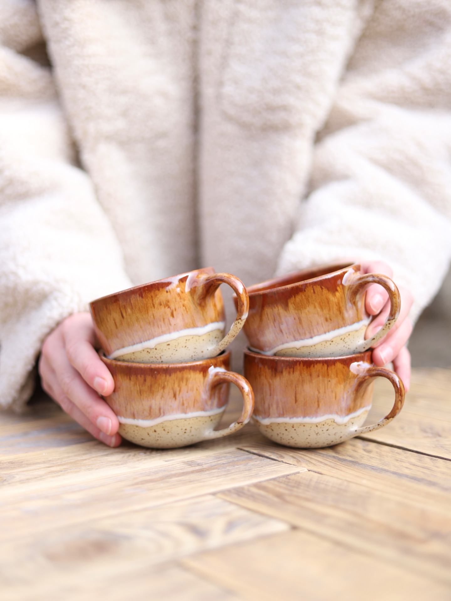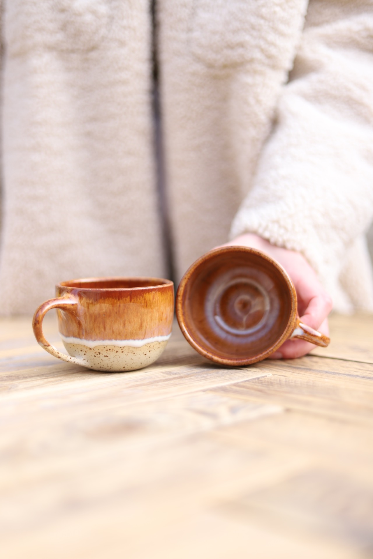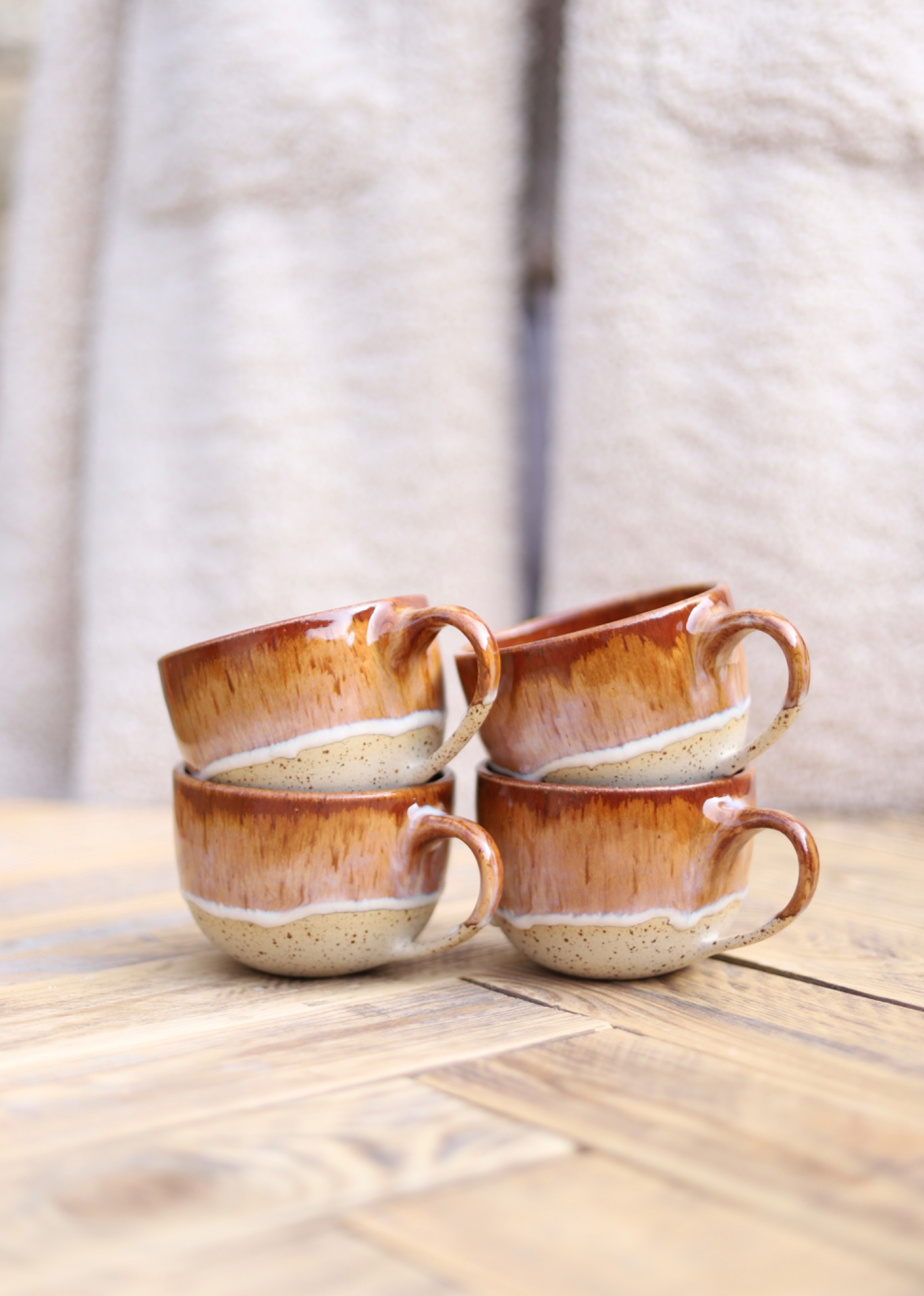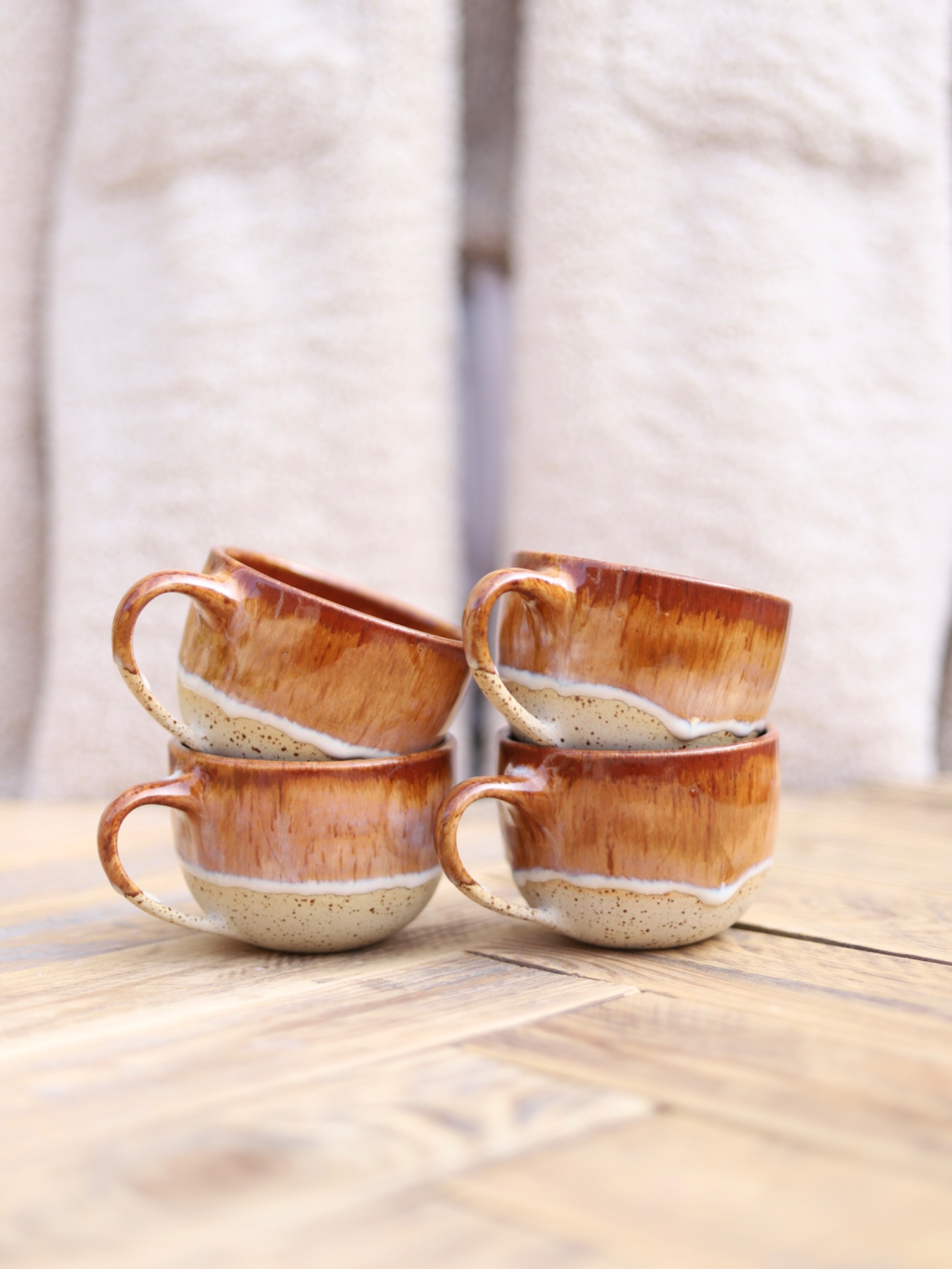Hrnek s objemem cca 200-220ml s efektní krémově-hnědou glazurou. Je vytočen z tečkované kameniny a vypálen na vysoké teploty.