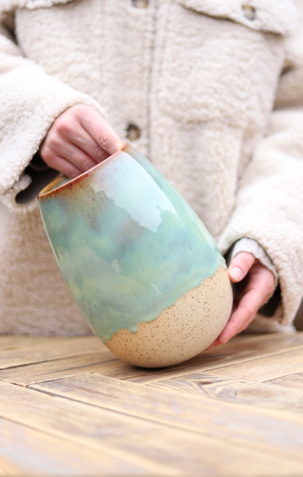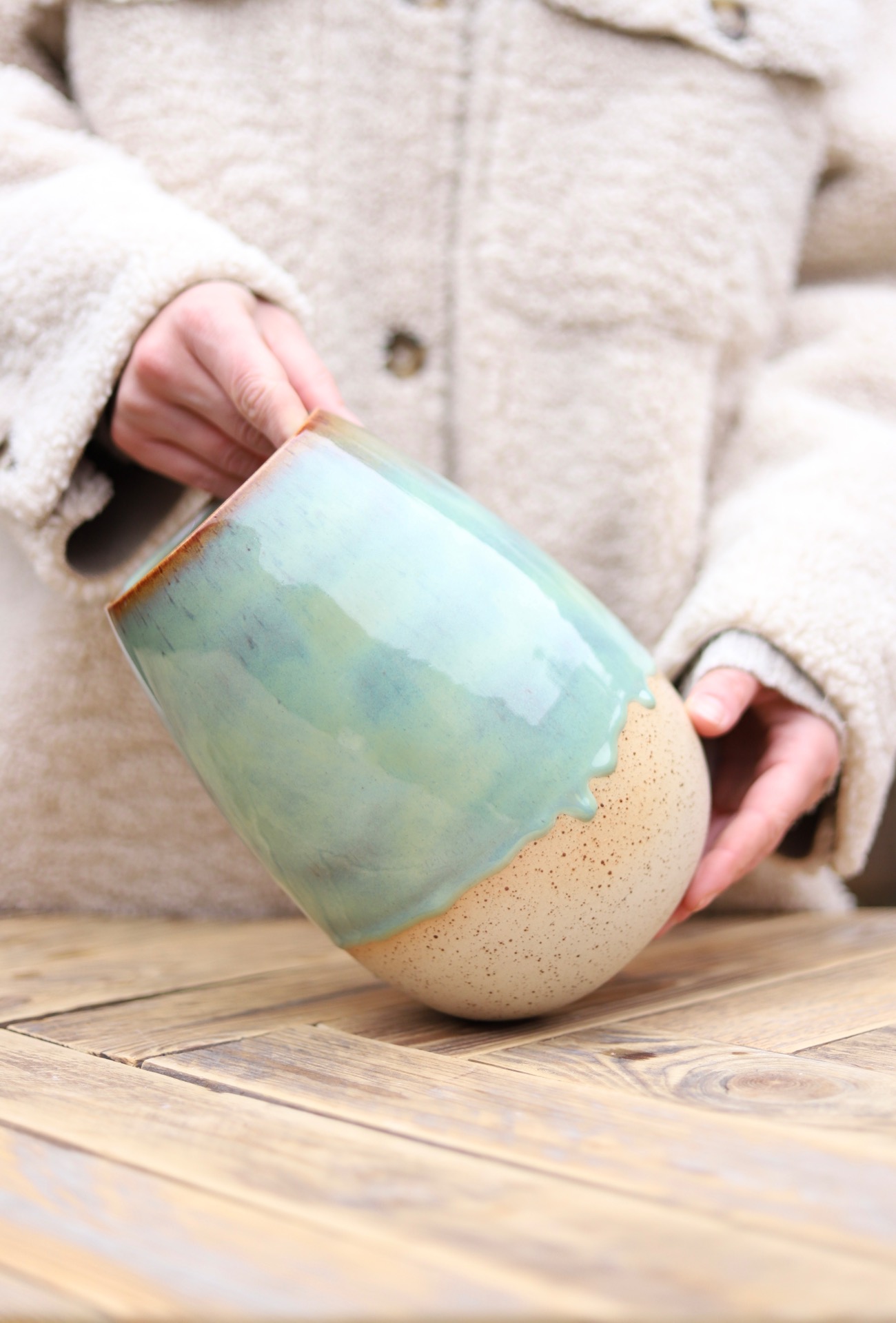 Velká váza o velikosti 21,5cm se zeleno-hnědou glazurou.