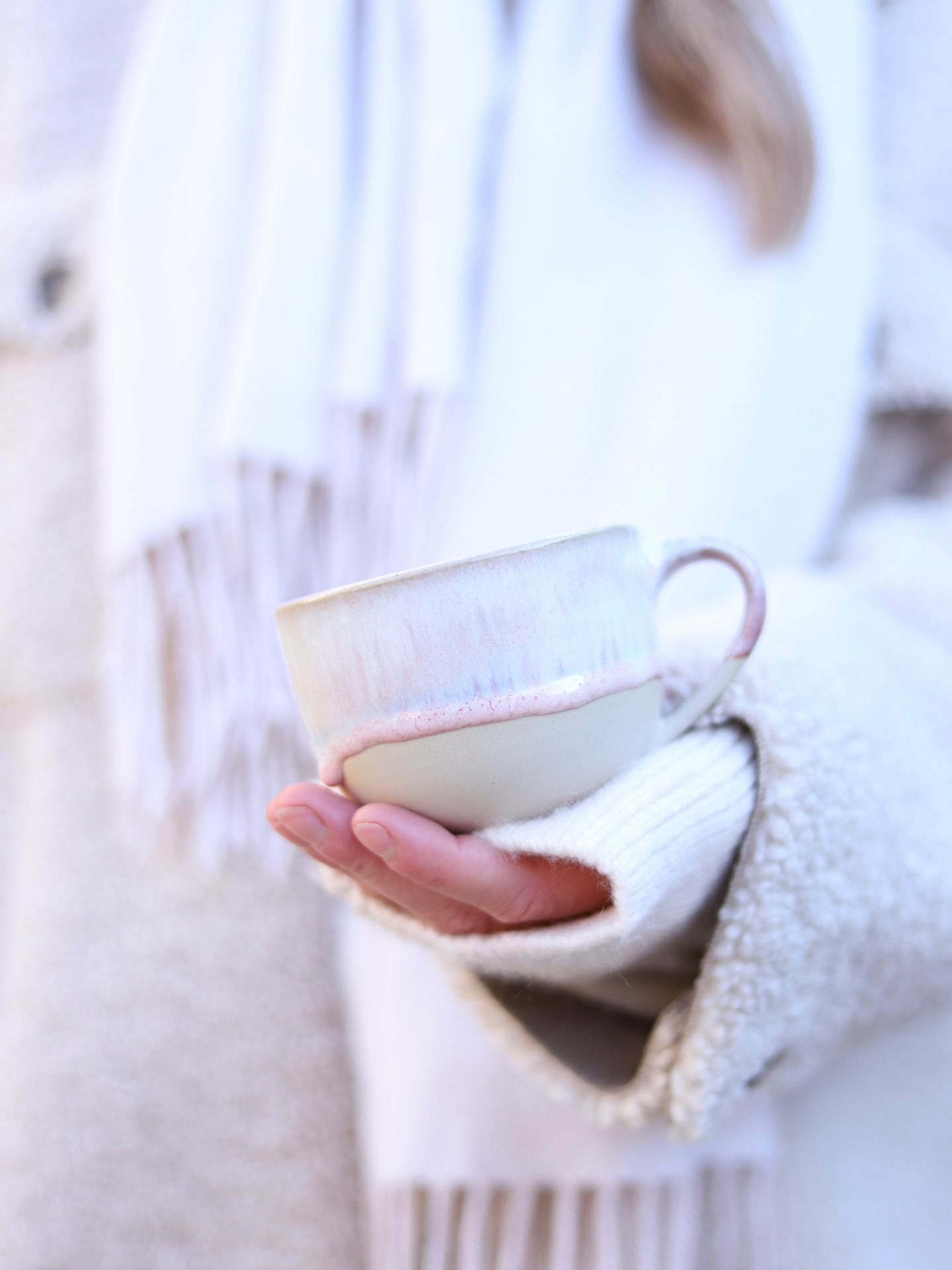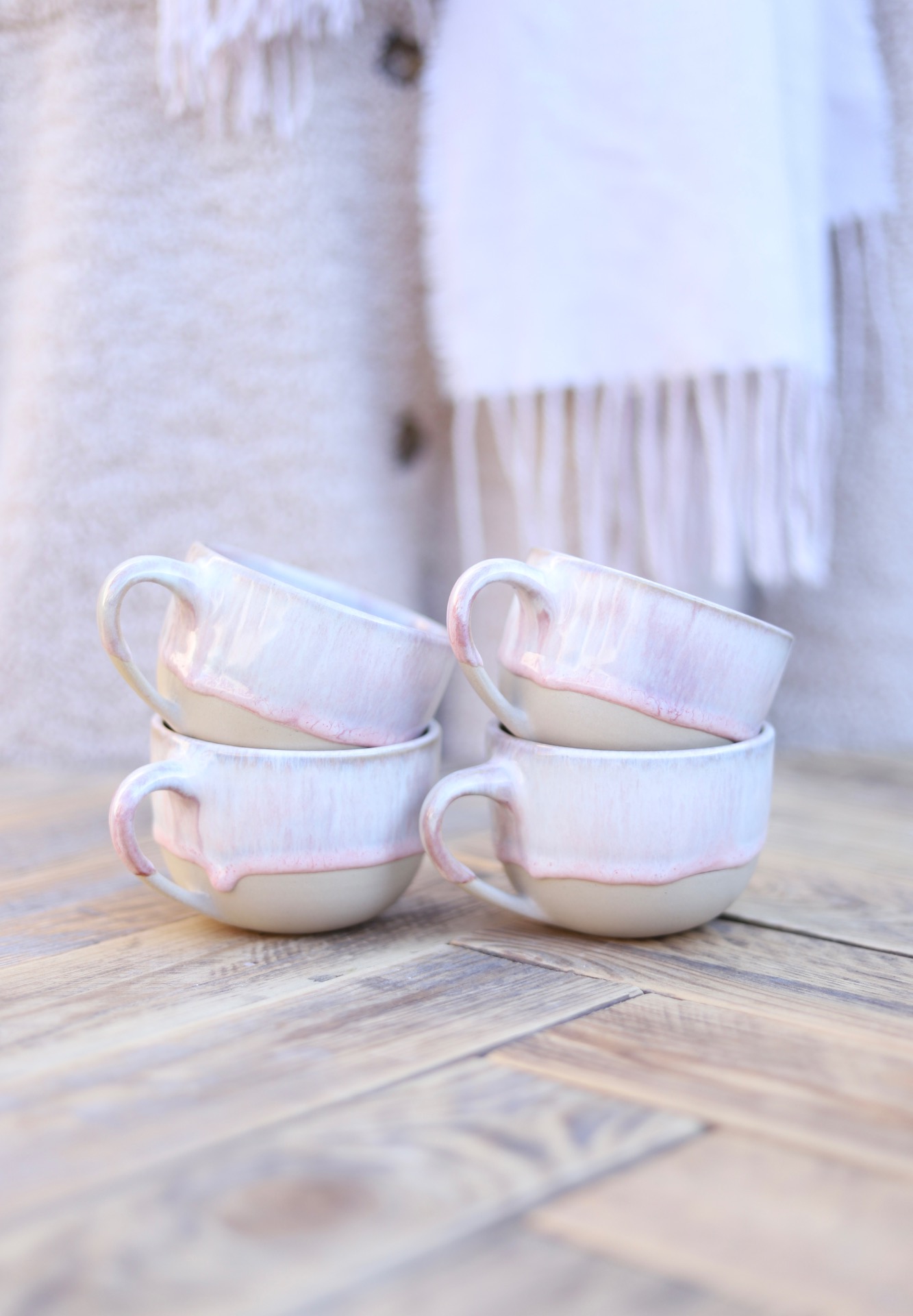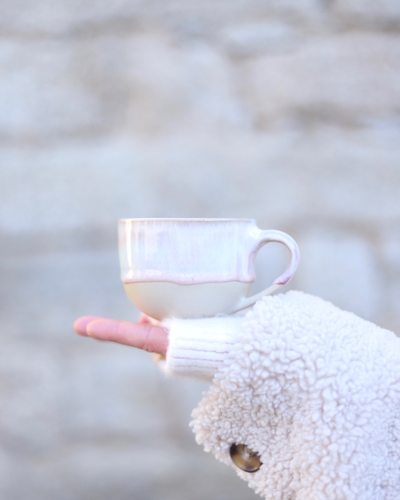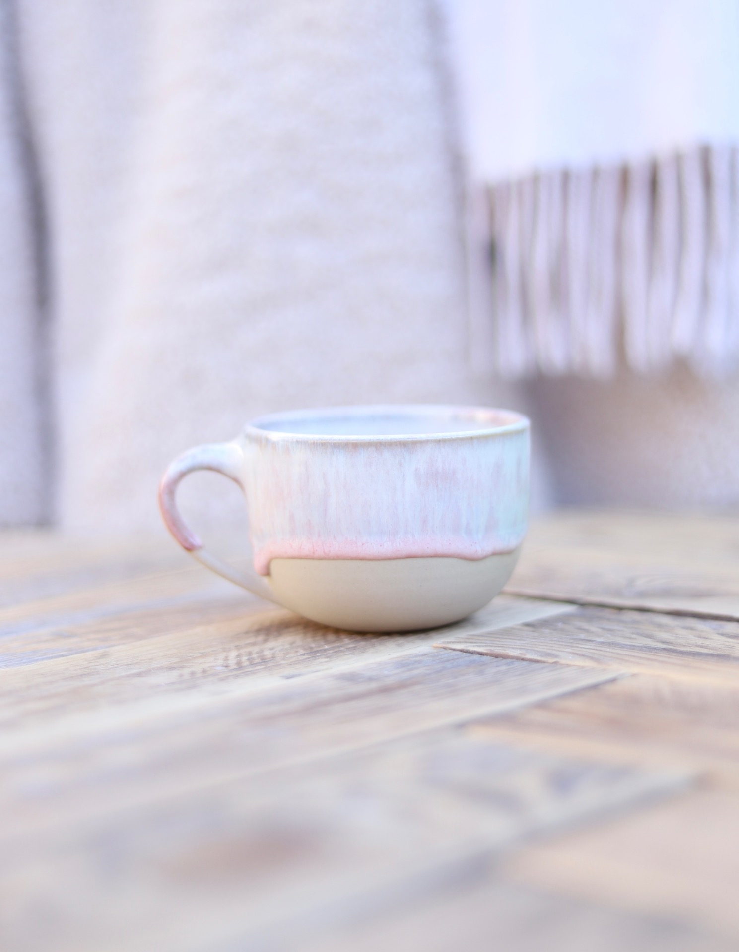 Hrnek s objemem cca 180-200ml s krémovou jahodovou glazurou. Je vytočen z béžové kameniny a vypálen na vysoké teploty.