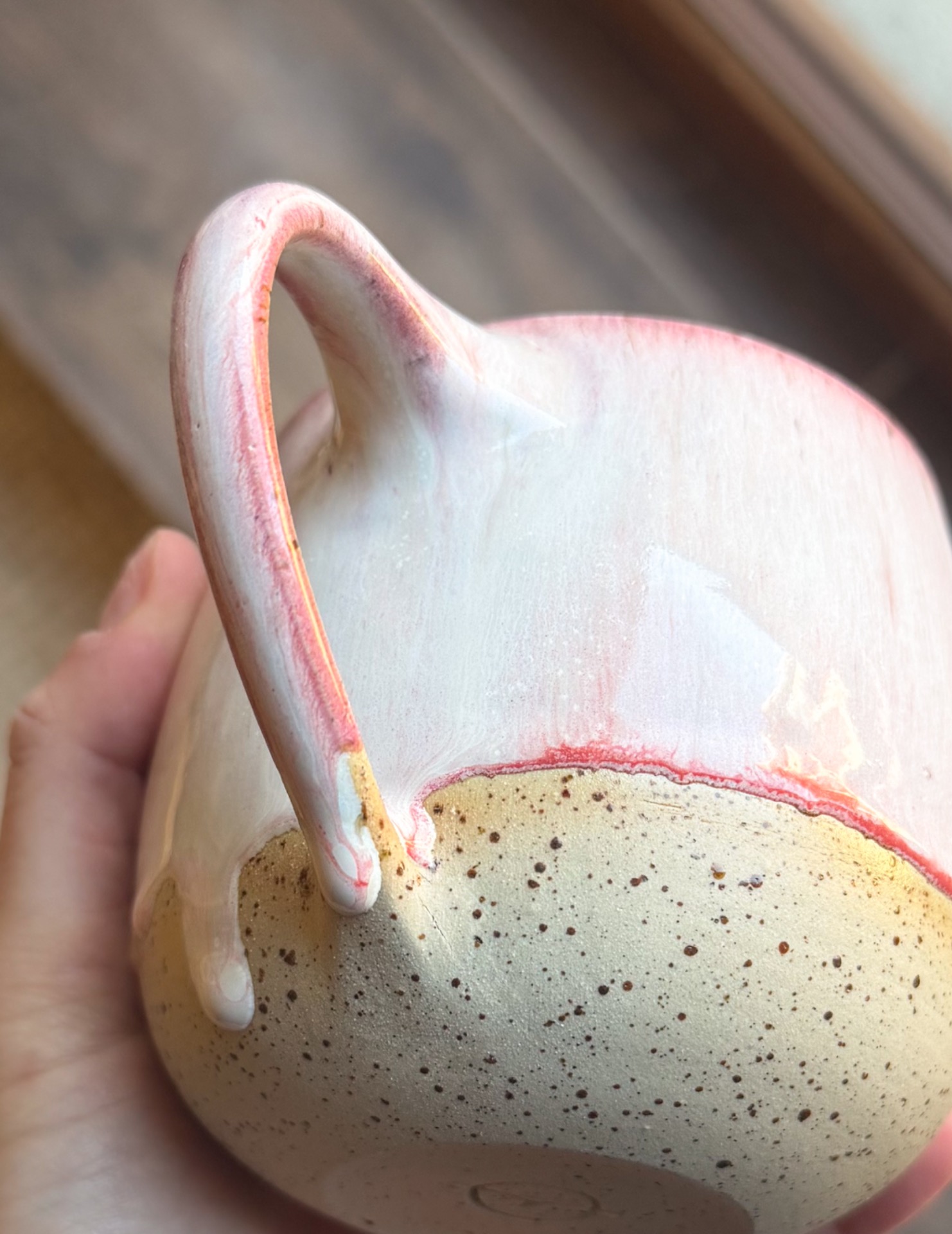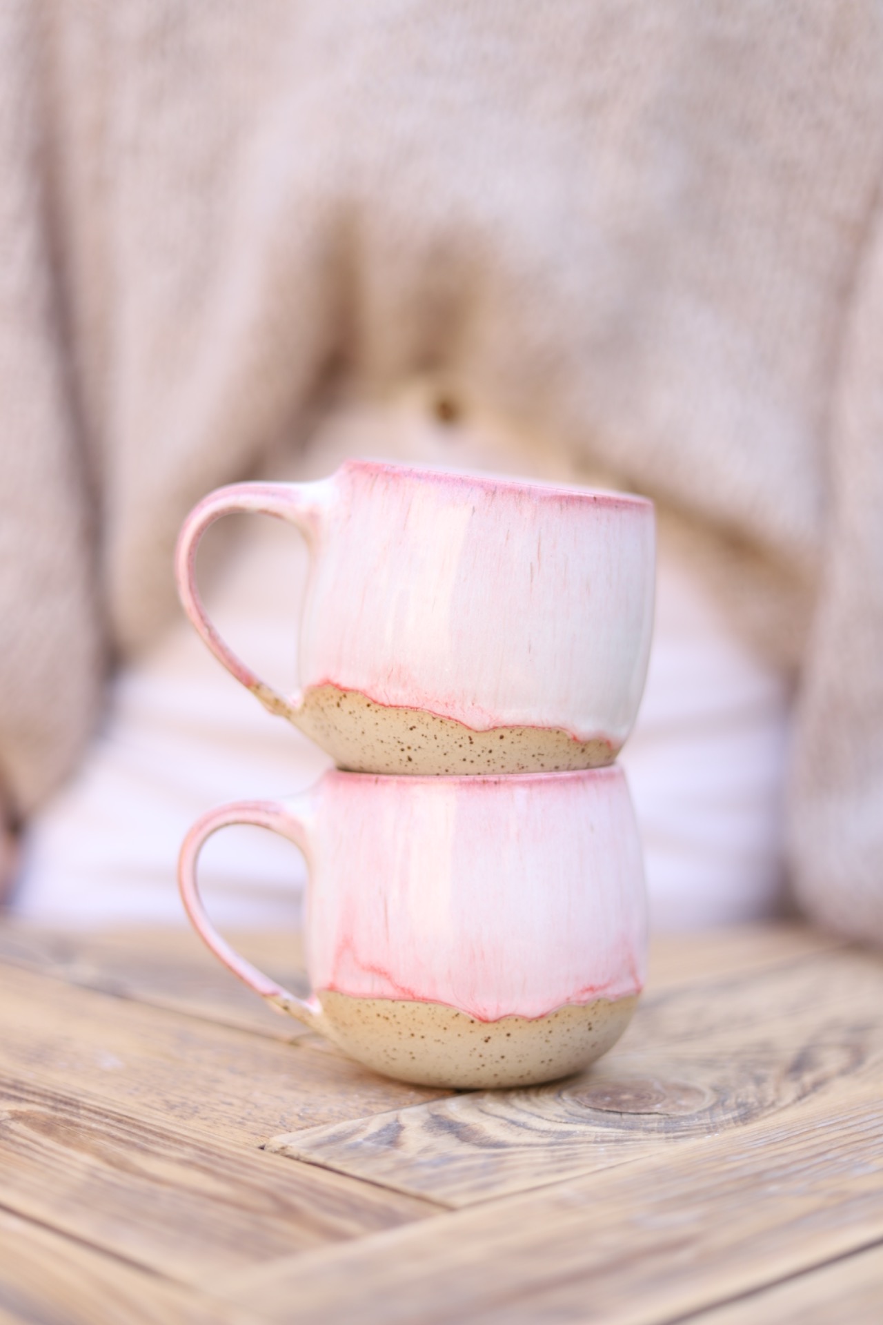 Hrnek s objemem cca 400ml s efektní růžovou glazurou. Hrnek je vytočen z tečkované kameniny a vypálen na vysoké teploty.