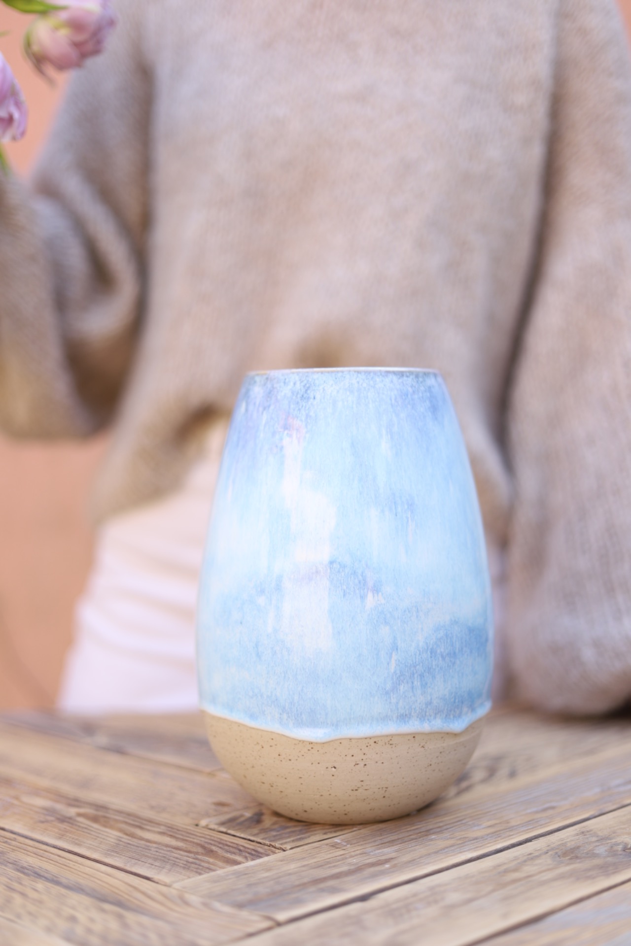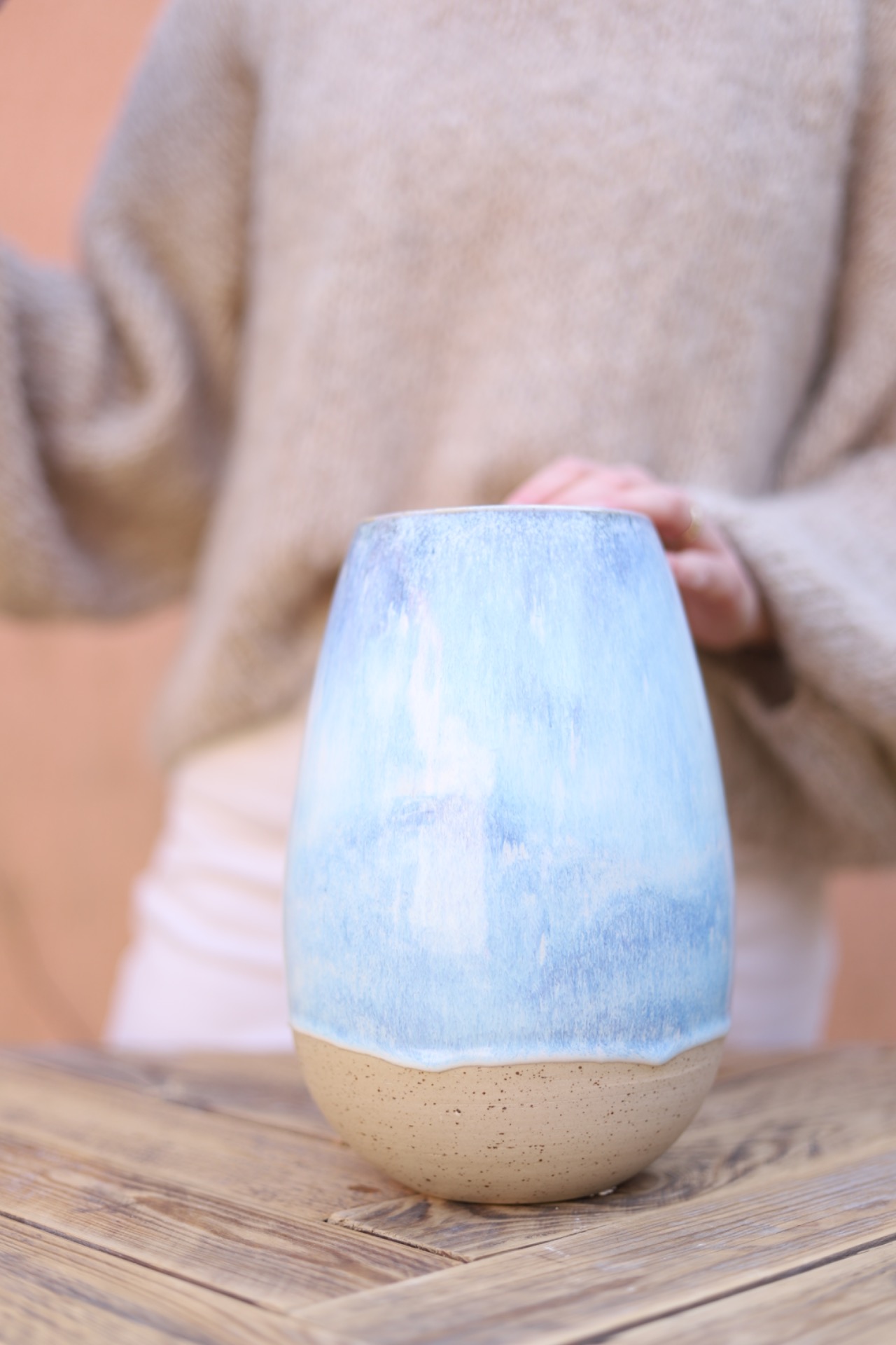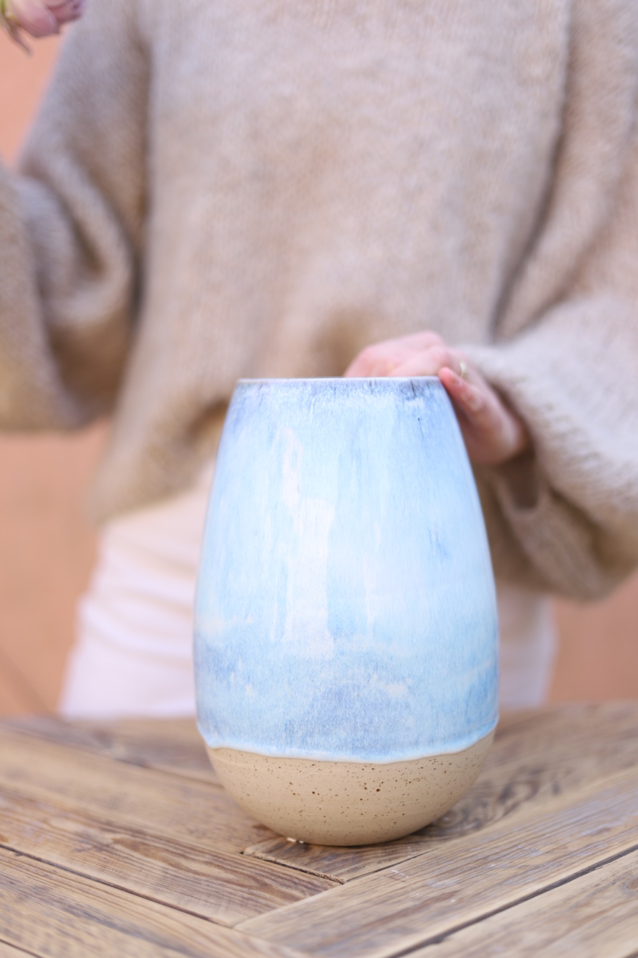 Velká váza o velikosti 23,5cm, průměr hrdla 9,5cm se světle modrou glazurou.