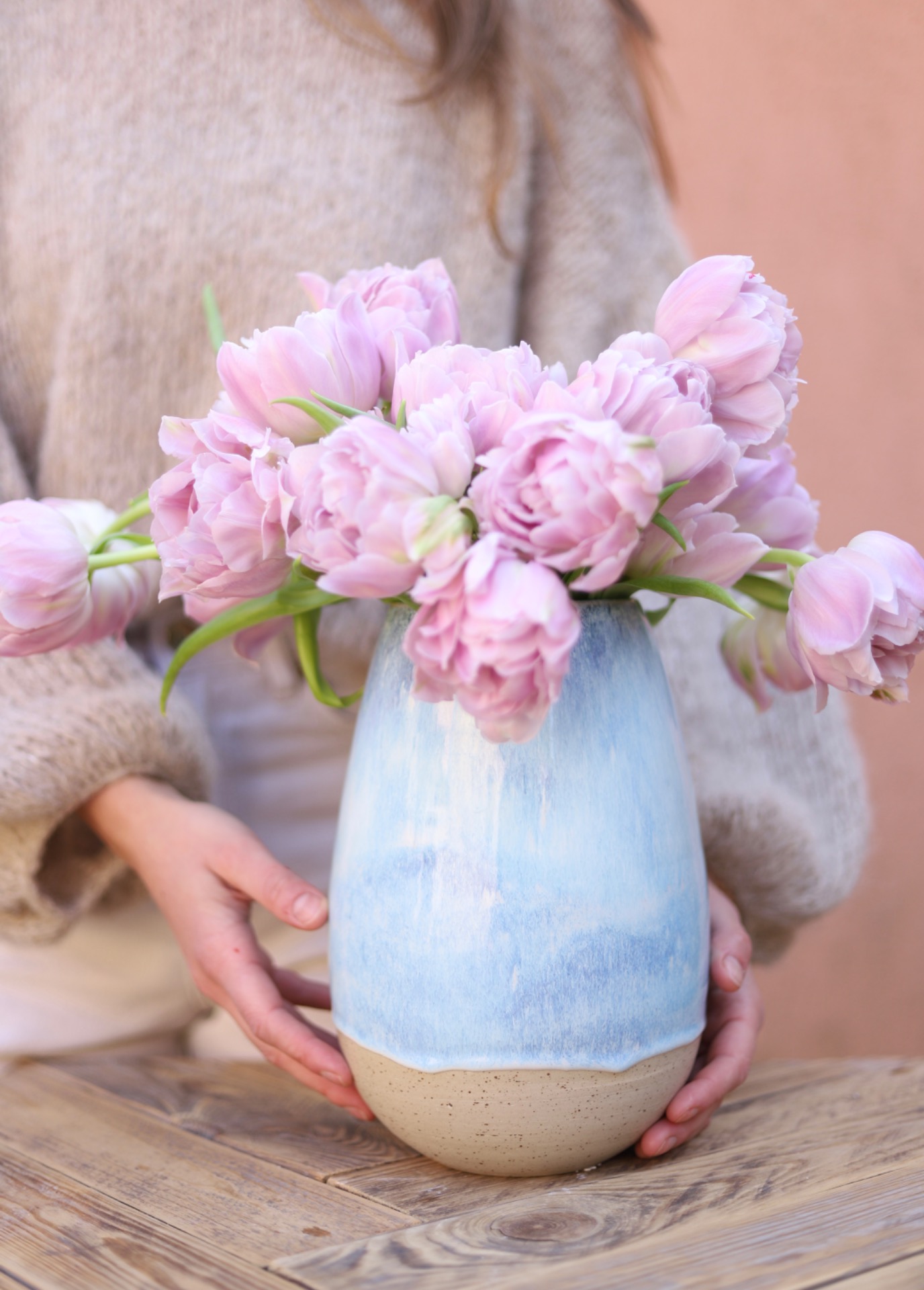 Je vypálena na vysoké teploty, takže střep je krásně slinutý a váza tak nepropustí ani kapičku.